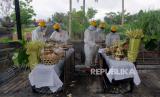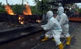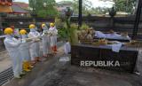 REPUBLIKA.CO.ID, BANGLI -- Petugas menggunakan pakaian hazmat dan alat pelindung diri saat melakukan proses kremasi jenazah pasien COVID-19 di Krematorium Sagraha Mandra Kantha Santhi, Desa Bebalang, Bangli, Bali, Sabtu (10/10/2020).