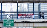 Pejalan kaki berada di dekat spanduk imbauan tolak anarkisme di Jakarta, Ahad (11/10/2020). Spanduk imbauan untuk tidak melakukan aksi anarkisme yang merebak di sejumlah kawasan di Jakarta pascaaksi unjuk rasa massa yang menolak pengesahan Omnibus Law UU Cipta Kerja Kamis (8/10) lalu. (FOTO : ANTARA/Indrianto Eko Suwarso)