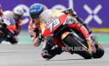 Alex Marquez dari tim Repsol Honda Team memacu kuda besinya di laga MotoGP Perancis di Sirkuit Le Mans, Ahad (11/10). (FOTO : EPA-EFE/EDDY LEMAISTRE)