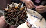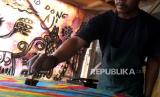 Nurohmat membuat motif virus corona sebelum dibuat cap batik di Omah Kreatif Dongaji, Sewon, Bantul, Yogyakarta, Senin (12/10). Kain batik dengan motif ini dibuat oleh Nurohmat sebagai penanda zaman atau saat wabah Covid-19. Dengan menggunakan teknik cap pembuatan ini sejak Maret lalu. Kain ini dijual kepada pelanggan dengan harga mulai dari Rp 100 ribu hingga Rp 500 ribu tergantung motif dan kain yang digunakan. (FOTO : Wihdan Hidayat / Republika)