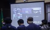 Hakim ketua Muhammad Sirad memimpin sidang perdana kasus pemalsuan surat jalan terhadap terdakwa Joko Tjandra, Anita Kolopaking, dan Brigjen Pol Prasetijo Utomo di Pengadilan Negeri Jakarta TImur, Selasa (13/10). Sidang perdana tersebut beragendakan pembacaan dakwaan oleh Jaksa Penuntut Umum yang digelar secara virtual. Republika/Thoudy Badai (FOTO : Republika/Thoudy Badai)