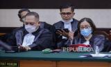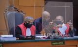 Hakim ketua Muhammad Sirad (kanan) memimpin sidang perdana kasus pemalsuan surat jalan terhadap terdakwa Joko Tjandra, Anita Kolopaking, dan Brigjen Pol Prasetijo Utomo di Pengadilan Negeri Jakarta TImur, Selasa (13/10). Sidang perdana tersebut beragendakan pembacaan dakwaan oleh Jaksa Penuntut Umum yang digelar secara virtual. Republika/Thoudy Badai (FOTO : Republika/Thoudy Badai)
