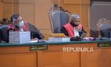 REPUBLIKA.CO.ID, JAKARTA -- Hakim ketua Muhammad Sirad memimpin sidang perdana kasus pemalsuan surat jalan terhadap terdakwa Joko Tjandra, Anita Kolopaking, dan Brigjen Pol Prasetijo Utomo di Pengadilan Negeri Jakarta Timur, Selasa (13/10).