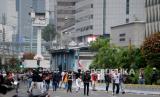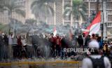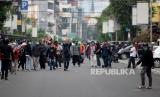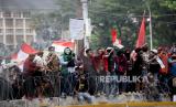 REPUBLIKA.CO.ID, JAKARTA -- Massa menggelar aksi unjuk rasa menolak UU Cipta Kerja di sekitar kawasan Monas, Jakarta, Selasa (13/10).