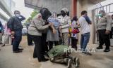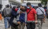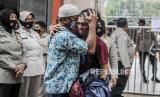 Sejumlah orang tua saat menjemput anaknya yang ditahan karena terlibat aksi penolakan Undang-Undang Cipta Kerja di Polda Metro Jaya, Jakarta, Rabu (14/10). Polda Metro Jaya mengamankan 561 demonstran yang didominasi oleh remaja berstatus pelajar yang diduga terlibat kerusuhan saat aksi penolakan Undang-Undang Cipta kerja. Republika/Putra M. Akbar (FOTO : Republika/Putra M. Akbar)
