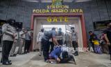 REPUBLIKA.CO.ID, JAKARTA -- Haru biru menyelimuti suasana pembebasan tahanan Demonstran yang terlibat aksi penolakan Undang-Undang Cipta Kerja di Polda Metro Jaya, Jakarta, Rabu (14/10).