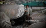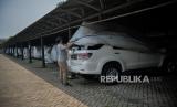 Petugas merawat kendaraan milik nasabah di Gudang Terpadu Pegadaian, Kebon Nanas, Jakarta Timur, Kamis (15/10). Sejak pandemi covid-19 pegadaian mengalami peningkatan jumlah nasabah yang menjaminkan kendaraannya hingga 80 persen. Republika/Thoudy Badai (FOTO : Republika/Thoudy Badai)
