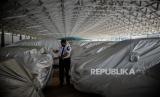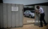 Petugas berjaga di area Gudang Terpadu Pegadaian, Kebon Nanas, Jakarta Timur, Kamis (15/10). Sejak pandemi covid-19 pegadaian mengalami peningkatan jumlah nasabah yang menjaminkan kendaraannya hingga 80 persen. Republika/Thoudy Badai (FOTO : Republika/Thoudy Badai)