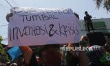 REPUBLIKA.CO.ID, JOMBANG -- Dua aksi penolakan UU Cipta Kerja berlangsung di Kabupaten Jombang, Jawa Timur, Kamis (15/10). Aksi dilakukan di tempat berbeda ini mengusung tuntutan yang sama.