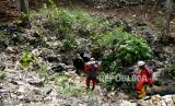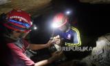 Tim eksplorasi sumber air bersiap untuk masuk di mulut Gua Cikal, Jeruken, Panggang, Gunungkidul, Yogyakarta, Kamis (15/10). Tim ini mencari dan mengetes air di kawasan Gunungkidul. Kualitas, debit, dan cadangan air menjadi perhatian tim eksplorasi. Hal ini nanti menjadi penentu apakah layak untuk dipasang pompa permanen. Dengan diketemukan sumber air atau cadangan air ini bisa menjadi solusi kelangkaan air saat kemarau. (FOTO : Wihdan Hidayat / Republika)