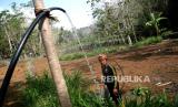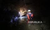 Tim eksplorasi sumber air mengecek aliran air dari pompa di dalam Gua Cikal, Jeruken, Panggang, Gunungkidul, Yogyakarta, Kamis (15/10). Tim ini mencari dan mengetes air di kawasan Gunungkidul. Kualitas, debit, dan cadangan air menjadi perhatian tim eksplorasi. Hal ini nanti menjadi penentu apakah layak untuk dipasang pompa permanen. Dengan diketemukan sumber air atau cadangan air ini bisa menjadi solusi kelangkaan air saat kemarau. (FOTO : Wihdan Hidayat / Republika)