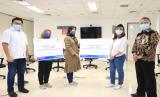 Human Capital, General Service and Corporate Communication Director, Esther Sri Harjati (kedua dari kanan) didampingi Chief of Corporate Communication and Corporate Social Responsibilty, Yulian Warman (kiri) menyerahkan bantuan dana bergulir kepada UMKM di Menara FIF, Jakarta Selatan, Kamis (15/10). (FOTO : Dok FIFGROUP)