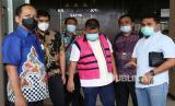 Pengusaha Tommy Sumardi (ketiga kanan) mengenakan baju tahanan saat pelimpahan tahap II kasus dugaan pencabutan red notice atas nama Joko Soegiarto Tjandra alias Djoko Tjandra di Kantor Kejaksaan Negeri Jakarta Selatan, Jakarta, Jumat (16/10/2020). Penyidik Bareskrim Polri melimpahkan tersangka dan barang bukti untuk tersangka Irjen Pol Napoleon Bonaparte, Brigjen Pol Prasetijo Utomo dan pengusaha Tommy Sumardi ke Kejaksaan Negeri Jakarta Selatan untuk segera disidangkan. (FOTO : ANTARA/Rommy S)