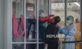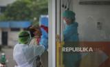 REPUBLIKA.CO.ID, JAKARTA -- Warga melakukan tes usap atau swab di Lab Gemonik Solidaritas Indonesia (GSI), Cilandak, Jakarta, Senin (19/10).