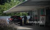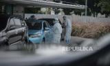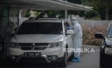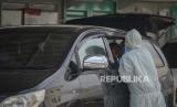 Warga melakukan tes usap atau swab secara drive thru di Lab Gemonik Solidaritas Indonesia (GSI), Cilandak, Jakarta, Senin (19/10). Pemprov DKI Jakarta bersama Badan Pembentukan Peraturan Daerah (Bapemperda) masih menyusun rancangan peraturan daerah terkait penanganan Covid-19 dengan ketentuan akan memberlakukan denda bagi warga yang menolak melakukan tes usap dan tes cepat mencapai Rp5 Juta. Republika/Thoudy Badai (FOTO : Republika/Thoudy Badai)