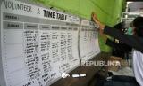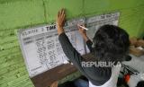 Daftar nama Rlrelawan yang mengikuti pembagian nasi gratis untuk buruh gendong di Muja-Muju, Yogyakarta, Senin (19/10). Sebanyak 130 bungkus nasi siap makan disiapkan untuk buruh gendong di Pasar Beringharjo yang terdampak Covid-19. Setiap hari puluhan relawan membantu memasak, membungkus, DNA mengirimkan nasi. Namun jika ada donatur yang mengirimkan nasi akan diberikan ke tukang becak kayuh. (FOTO : Wihdan Hidayat / Republika)
