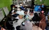 Koordinator relawan membagi kerja tim pengiriman nasi gratis untuk buruh gendong di Muja-Muju, Yogyakarta, Senin (19/10). Sebanyak 130 bungkus nasi siap makan disiapkan untuk buruh gendong di Pasar Beringharjo yang terdampak Covid-19. Setiap hari puluhan relawan membantu memasak, membungkus, DNA mengirimkan nasi. Namun jika ada donatur yang mengirimkan nasi akan diberikan ke tukang becak kayuh. (FOTO : Wihdan Hidayat / Republika)