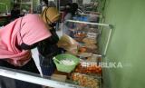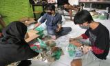 Relawan membungkus nasi gratis untuk buruh gendong di Muja-Muju, Yogyakarta, Senin (19/10). Sebanyak 130 bungkus nasi siap makan disiapkan untuk buruh gendong di Pasar Beringharjo yang terdampak Covid-19. Setiap hari puluhan relawan membantu memasak, membungkus, DNA mengirimkan nasi. Namun jika ada donatur yang mengirimkan nasi akan diberikan ke tukang becak kayuh. (FOTO : Wihdan Hidayat / Republika)