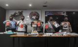 Kapolda Metro Jaya Irjen Nana Sudjana (tengah) bersama Kabid Humas Polda Metro Jaya Kombes Pol Yusri Yunus (kedua kanan) dan Dirresnarkoba Polda Metro Jaya Kombes Pol Mukti Juharsa (kedua kiri) memperlihatkan foto terpidana mati kasus narkoba jaringan Internasional Cai Changpan beserta barang bukti saat konferensi pers di Mapolda Metro Jaya, Jakarta, Senin (19/10). Cai Changpan berhasil melarikan diri dengan menggali lubang dari Lapas Kelas 1 Tangerang, Banten, ditemukan meninggal dunia dalam kondisi gantung diri di kawasan pabrik pembakaran ban di hutan Jasinga, Bogor, Jawa Barat, Sabtu (17/10). Republika/Putra M. Akbar (FOTO : Republika/Putra M. Akbar)