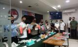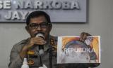 Kapolda Metro Jaya Irjen Nana Sudjana beserta jajaranya menggelar konferensi pers terkait kematian terpidana mati kasus narkoba Cai Changpan dalam pelariannya, di Mapolda Metro Jaya, Jakarta Selatan, Senin (19/10) (FOTO : Republika/Ali Mansur )