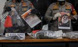 Anggota kepolisian membawa sejumlah barang bukti milik terpidana mati kasus narkoba jaringan Internasional Cai Changpan usai konferensi pers di Mapolda Metro Jaya, Jakarta, Senin (19/10). Cai Changpan berhasil melarikan diri dengan menggali lubang dari Lapas Kelas 1 Tangerang, Banten, ditemukan meninggal dunia dalam kondisi gantung diri di kawasan pabrik pembakaran ban di hutan Jasinga, Bogor, Jawa Barat, Sabtu (17/10). Republika/Putra M. Akbar (FOTO : Republika/Putra M. Akbar)