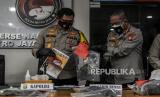 REPUBLIKA.CO.ID, JAKARTA -- Kapolda Metro Jaya Irjen Nana Sudjana menggelar konferensi pers terkait terpidana mati kasus narkoba jaringan Internasional Cai Changpan beserta barang bukti saat konferensi pers di Mapolda Metro Jaya, Jakarta, Senin (19/10).