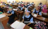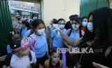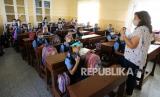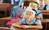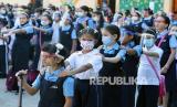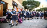REPUBLIKA.CO.ID,KAIRO -- Siswa mengenakan masker wajah pada hari pertama sekolah di sekolah Notre Dame di Kairo, Mesir, Senin (19/10/2020).