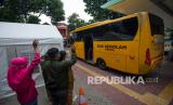 REPUBLIKA.CO.ID, JAKARTA -- Sejumlah kerabat melambaikan tangan ke arah bus pembawa pasien COVID-19 ke Rumah Sakit Darurat Penanganan COVID-19 Wisma Atlet Kemayoran dari Puskesmas Duren Sawit, Jakarta, Senin (19/10/2020). Berdasarkan data Satgas Penanganan COVID-19 pada Senin (19/10) jumlah pasien COVID-19 yang sembuh mencapai 3.919 orang atau lebih besar dari kasus baru sebanyak 3.373 orang. ANTARA FOTO/Aditya Pradana Putra/nz.