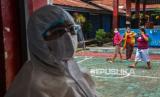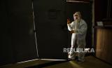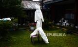 Seorang sipir memakai pakaian hazmat dan alat pelindung diri lengkap saat akan bertugas di Lapas Perempuan Pekanbaru. (FOTO : ANTARA FOTO/FB Anggoro)