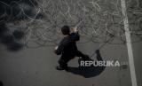REPUBLIKA.CO.ID, JAKARTA -- Aparat kepolisian memasang kawat berduri di jalan Medan Merdeka Barat, Jakarta, Selasa (20/10).
