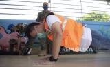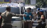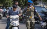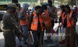 REPUBLIKA.CO.ID, PALEMBANG -- Satgas gabungan menggiring warga pelanggar protokol kesehatan saat razia masker di perbatasan Kota Palembang dan Kabupaten Banyuasin, Sumatera Selatan, Rabu (21/10/2020).