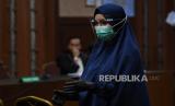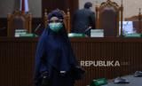 REPUBLIKA.CO.ID, JAKARTA -- Terdakwa kasus suap dan gratifikasi pengurusan fatwa Mahkamah Agung (MA) Djoko Tjandra, Pinangki Sirna Malasari mengenakan rompi tahanan usai sidang lanjutan di Pengadilan Tipikor, Jakarta, Rabu (21/10/2020).