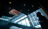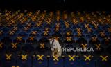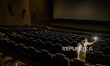 Petugas beraktivitas di area bioskop saat pembukaan perdana bioskop CGV Grand Indonesia pada masa PSBB transisi di Jakarta, Rabu (21/10). Jaringan bioskop CGV kembali membuka bioskopnya pada masa PSBB transisi dengan menerapkan protokol kesehatan seperti pengecekan suhu, pendataan pengunjung, penggunaan masker serta membatasi kapasitas pengunjung sebanyak 25 persen. Republika/Thoudy Badai (FOTO : Republika/Thoudy Badai)