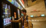 Pengunjung memesan tiket saat pembukaan perdana bioskop CGV Grand Indonesia pada masa PSBB transisi di Jakarta, Rabu (21/10). Jaringan bioskop CGV kembali membuka bioskopnya pada masa PSBB transisi dengan menerapkan protokol kesehatan seperti pengecekan suhu, pendataan pengunjung, penggunaan masker serta membatasi kapasitas pengunjung sebanyak 25 persen. Republika/Thoudy Badai (FOTO : Republika/Thoudy Badai)