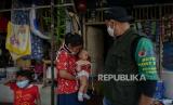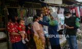 Satgas Padat Karya RW 07 melakukan sosialisasi 3M sekaligus membagikan masker kepada warga di kawasan Condet Pejaten, Pasar Minggu, Jakarta Selatan, Kamis (22/10). Kegiatan sosialisasi tersebut dilakukan secara swadaya masyarakat untuk disiplin menerapkan protokol kesehatan di area pemukiman sebagai upaya menekan penyebaran covid-19. Republika/Thoudy Badai (FOTO : Republika/Thoudy Badai)