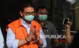 Direktur Utama PT PAL Indonesia (Persero) Budiman Saleh (kanan) menuju mobil tahanan usai menjalani pemeriksaan di Komisi Pemberantasan Korupsi, Jakarta, Kamis (22/10/2020). Budiman Saleh ditahan atas kasus dugaan korupsi kegiatan penjualan dan pemasaran saat menjabat sebagai Direktur Aerostructure (2007-2010), Direktur Aircraft Integration (2010-2012) dan Direktur Niaga dan Restrukturisasi (2012-2017) di PT Dirgantara Indonesia (PT DI). (FOTO : Antara/Puspa Perwitasari)