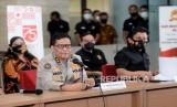 Kepala Divisi Humas Polri Irjen Pol Argo Yuwono memberikan konferensi pers penetapan tersangka kasus kebakaran Kejaksaan Agung di Mabes Polri, Jakarta, Jumat (23/10). Polri menetapkan delapan orang tersangka kasus kebakaran Gedung Utama Kejaksaan Agung. Menurut polisi, kebakaran gedung tersebut terjadi karena kelalaian kedelapan orang tersebut.Prayogi/Republika. (FOTO : Prayogi/Republika)