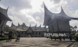 Sejumlah pengunjung saat berwisata di salah satu anjungan Taman Mini Indonesia Indah (TMII) Jakarta, Sabtu (24/10). Sejak beroperasi pada PSBB transisi kedua, TMII hanya dikunjungi sekitar 1.000 orang pada hari biasa dan 3.000 hingga 7.000 orang pada akhir pekan. Jumlah tersebut masih jauh dari kapasitas maksimal 25 persen berkisar 15.000 sampai 20.000 orang yang diduga akibat faktor masih tingginya angka penularan Covid-19. Republika/Putra M. Akbar (FOTO : Republika/Putra M. Akbar)