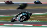 Pebalap Italian Franco Morbidelli dari tim Petronas Yamaha SRT memimpin balapan MotoGP eruel Grand Prix, Spanyol, Ahad (25/10). (FOTO : AP Photo/Antonio Calanni)