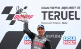REPUBLIKA.CO.ID, ARAGON -- Pembalap tim Petronas Yamaha Franco Morbidelli meraih kemenangan MotoGP keduanya musim ini setelah menjuarai Grand Prix Teruel di Sirkuit Aragon, Ahad (25/10).