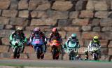 Sejumlah pebalap MotoGp riders beraksi di balapan MotoGP, Teruel Grand Prix, Spanyol, Ahad (25/10). (FOTO : EPA-EFE/Javier Cebollada)