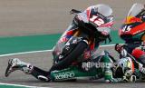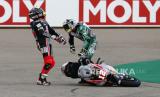 Pebalap Liqui Moly Intact GPs Thomas Luthi dan rider Onexox TKKR SAG Teams Kasma Daniel terlibat tabrakan yang cukup dramatis. Beruntung keduanya tampak tidak mengalami serius.