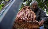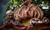 REPUBLIKA.CO.ID, BANDUNG -- Bunga bangkai jenis suweg (Amorphophallus paeoniifolius) tumbuh mekar di pekarangan di perumahan warga di Jalan Aeromodelling, Arcamanik, Kota Bandung, Senin (26/10).