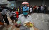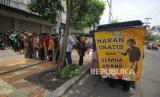 REPUBLIKA.CO.ID, SURABAYA -- Warga mengantre untuk mendapatkan makanan secara gratis di gerobak makanan milik Setiyono di jalan Kedungsari, Surabaya, Jawa Timur, Selasa (27/10/2020).