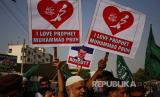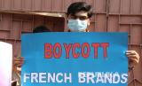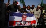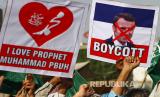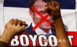 REPUBLIKA.CO.ID, KARACHI -- Umat Muslim Pakistan menggelar aksi protes mengecam sikap Presiden Prancis Emmanuel Macron terkait karikatur yang menghujat Nabi Muhammad SAW serta menyerukan aksi boikot produk Prancis di Karachi, Selasa (27/10).