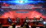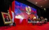 Narasumber memberikan paparan saat seminar Internasional season 1 yang diselenggarakan oleh Badan Pembinaan Ideologi Pancasila (BPIP) bekerjasama Dengan Gerakan Pemuda (GP) Ansor di Jakarta, Rabu (28/10). Seminar Internasional tersebut diselenggarakan dalam rangka memperingati Hari Santri Nasional dan hari Sumpah Pemuda. (FOTO : Prayogi/Republika)