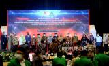 Para tamu undangan dan narasumber berfoto disela seminar Internasional yang diselenggarakan oleh Badan Pembinaan Ideologi Pancasila (BPIP) bekerjasama Dengan Gerakan Pemuda (GP) Ansor di Jakarta, Rabu (28/10). Seminar Internasional tersebut diselenggarakan dalam rangka memperingati Hari Santri Nasional dan hari Sumpah Pemuda. (FOTO : Prayogi/Republika)