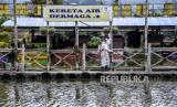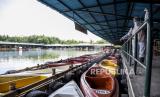 Petugas membersihkan kano di Wisata Alam Floating Market, Lembang, Kabupaten Bandung Barat, Jawa Barat, Kamis (19/3/2020). (FOTO : ANTARA/Raisan Al Farisi)