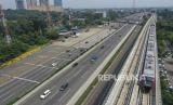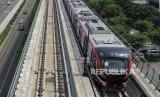 REPUBLIKA.CO.ID, JAKARTA -- Kereta api ringan (LRT) berada di lintasan LRT Jabodebek Cawang-Cibubur di Cibubur, Jakarta, Kamis (29/10/2020).