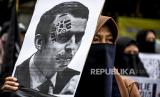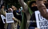 Sejumlah massa yang tergabung dalam Masyarakat Cinta Rasulullah melakukan Aksi Damai Bela Nabi di depan Gedung Sate, Jalan Diponegoro, Kota Bandung, Jumat (30/10). Dalam aksinya mereka mengecam pernyataan Presiden Prancis Emmanuel Macron yang dinilai telah menyinggung umat islam serta menyerukan untuk memboikot produk-produk Prancis. (FOTO : ABDAN SYAKURA/REPUBLIKA)